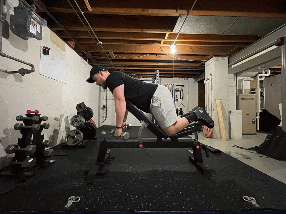 - Keep the elbows at your side while bringing the weight up and towards the shoulder